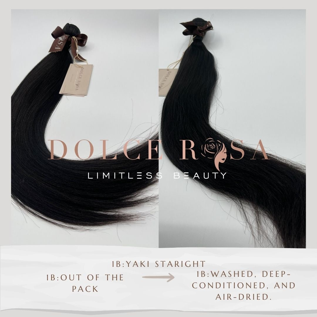 At Dolce Rosa, we only sell virgin Indian hair, which is the highest quality of hair available on the market. Virgin hair yields the best results in hair extensions, wigs and other hairstyling products because it is natural human hair. Because it hasn’t been damaged by chemicals, it is more durable and versatile. Virgin hair means durability, versatility and quality.